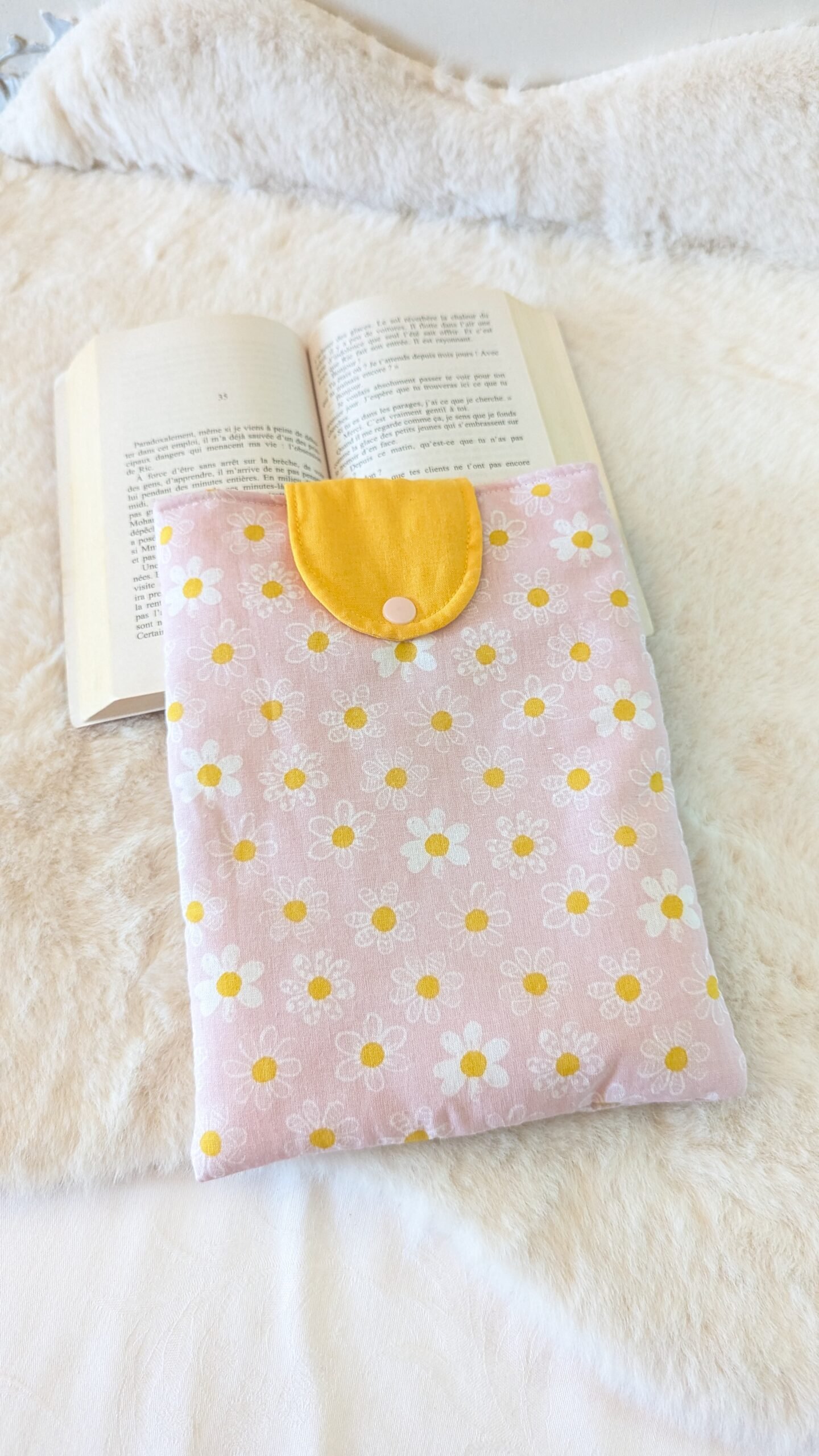 Protège livre format poche , avec un rabat , motif pâquerettes