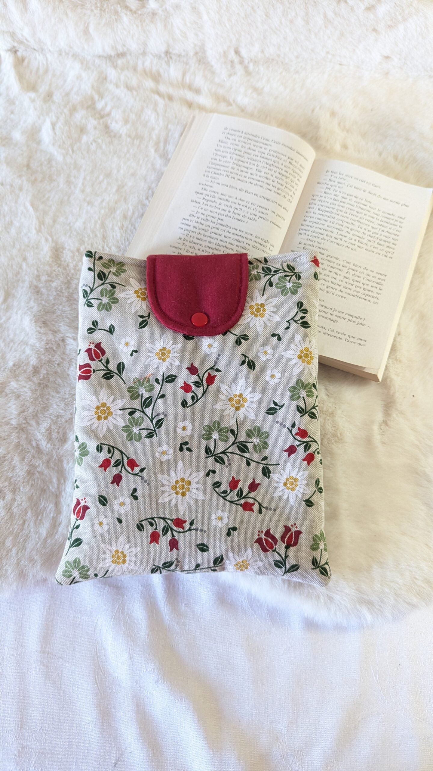 Housse ,protège livre format poche , »Mes petits bonheurs de Mai » pression blanche