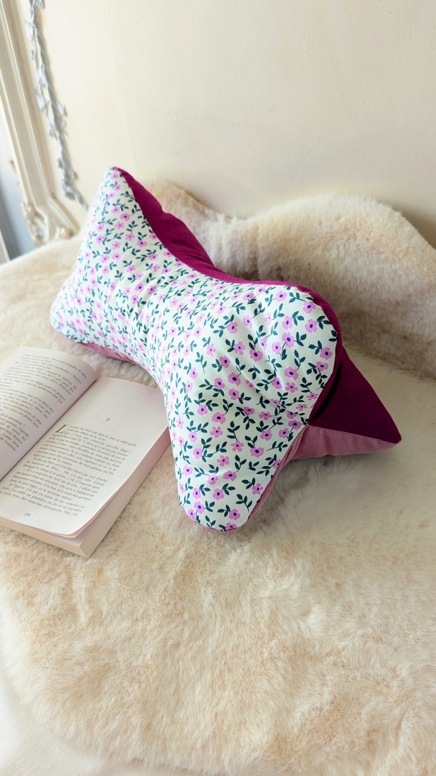 Coussin de lecture , cale nuque , petites fleurs roses