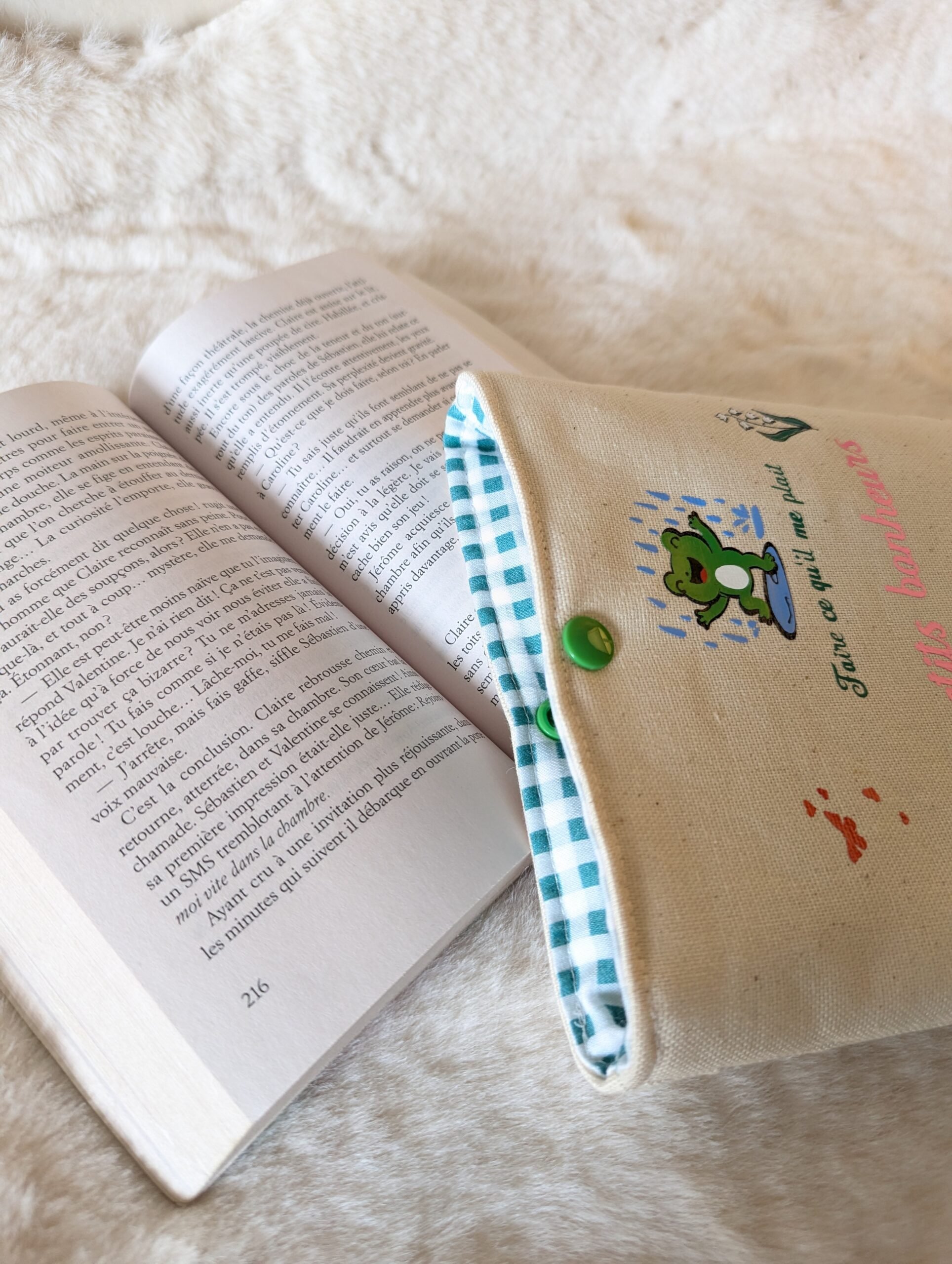 J’ai fais cette housse pour que vous puissiez emporter votre livre préféré partout avec vous , dans les transports , en voyage …