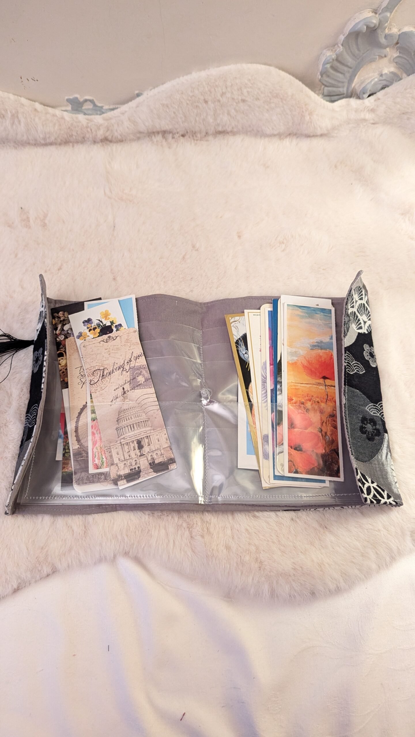 J’ai confectionné cette pochette pour que vous puissiez y ranger vos marque-pages collectionnés.