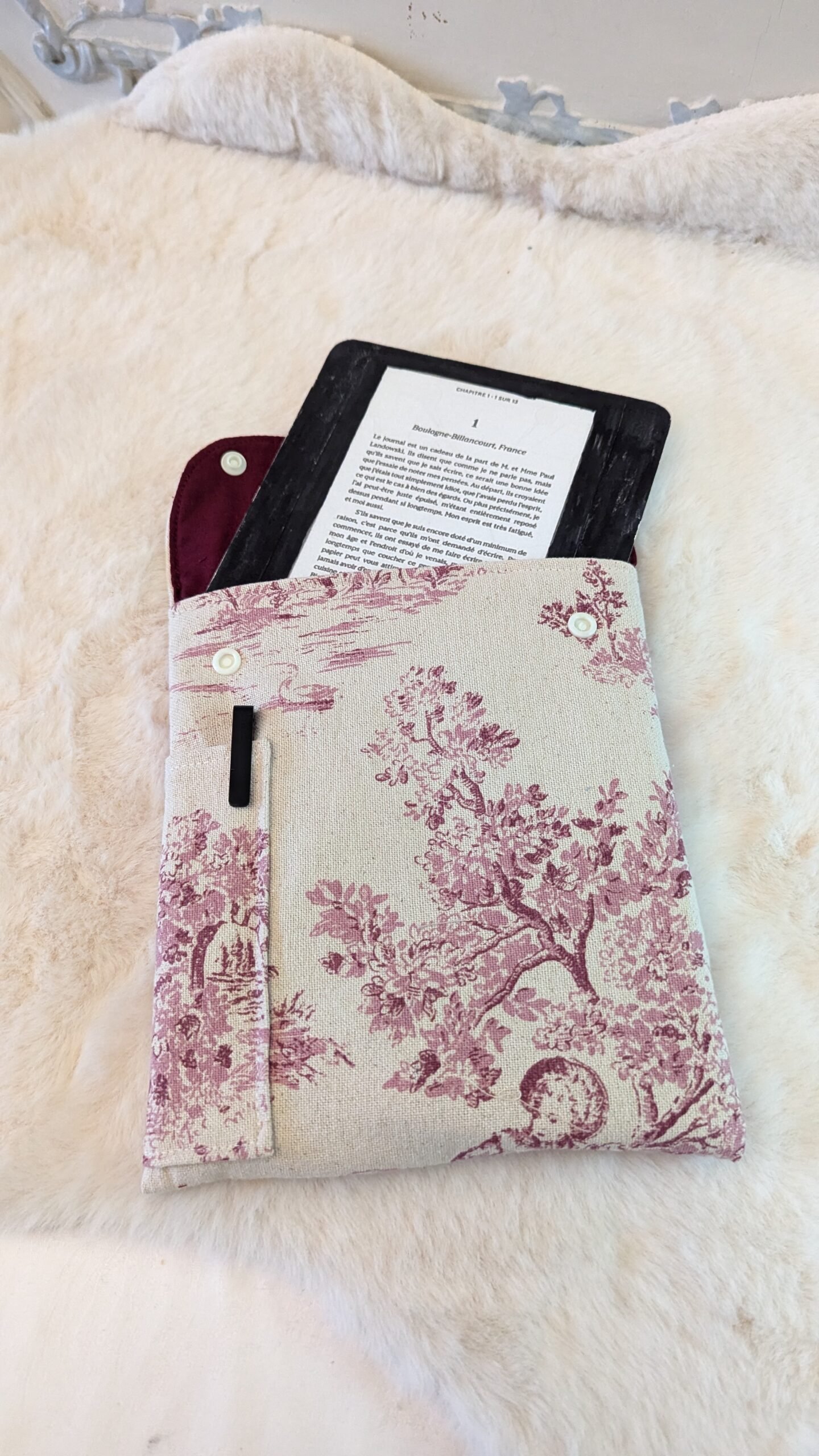 Protège liseuse , avec compartiment pour le stylet toile de Jouy rouge