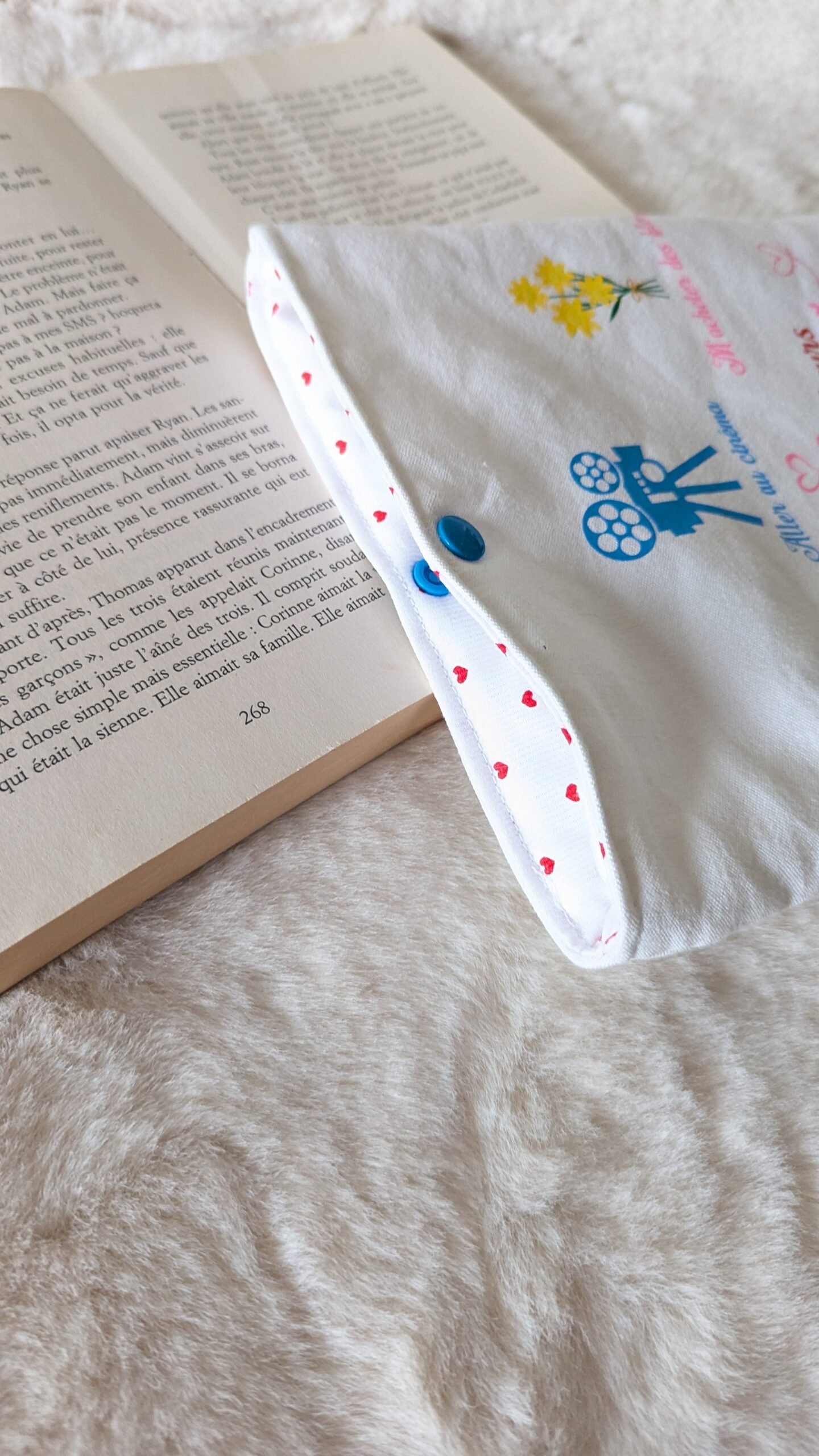 J’ai fais cette housse pour que vous puissiez emporter votre livre préféré partout avec vous , dans les transports , en voyage …